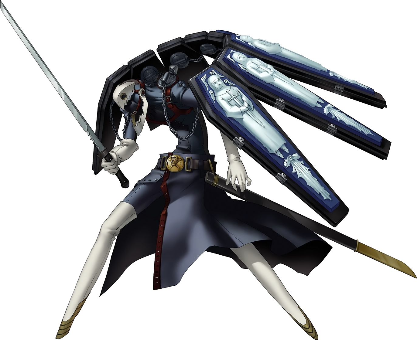 Thanatos appears from nothing, slicing a nasty sword demon-Hakuno's way. She catches the blade on her claws, but it flings her backwards, buying Minato space to breathe.]